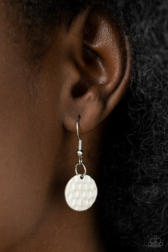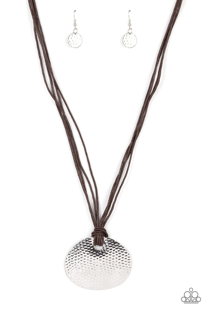 A meticulously hammered silver frame is knotted in place with red cording, invoking an artisan inspired aesthetic. Features an adjustable clasp closure.